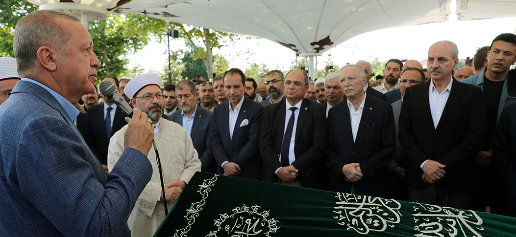 وعقب أداء صلاة الجنازة التي أمّها رئيس الشؤون الدينية علي أرباش ألقى الرئيس أردوغان كلمة مقتضبة أشار فيها إلى المنزلة الكبيرة للكاتب المرحوم أيغي.