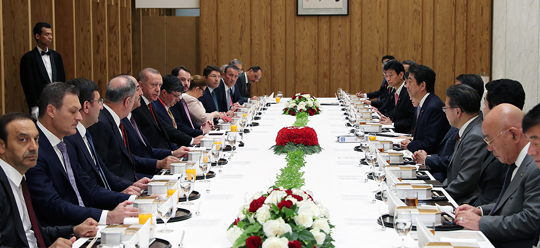 التقى رئيس الجمهورية رجب طيب أردوغان رئيس الوزراء الياباني شينزو أبي على مأدبة طعام عمل وذلك على هامش زيارته للعاصمة اليابانية طوكيو.