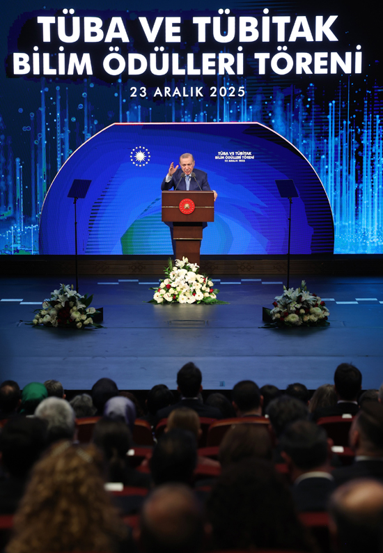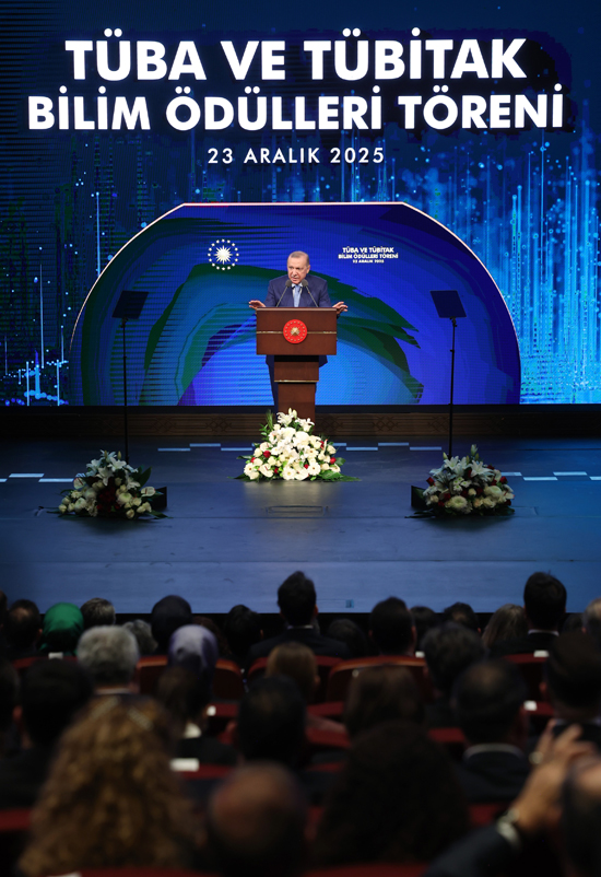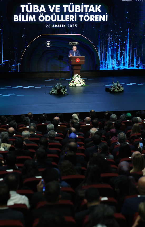 حضر الرئيس رجب طيب أردوغان حفل توزيع جوائز العلوم لعام 2025 TÜBA و TÜBİTAK في مركز بيشتيبي الوطني للمؤتمرات والثقافة.