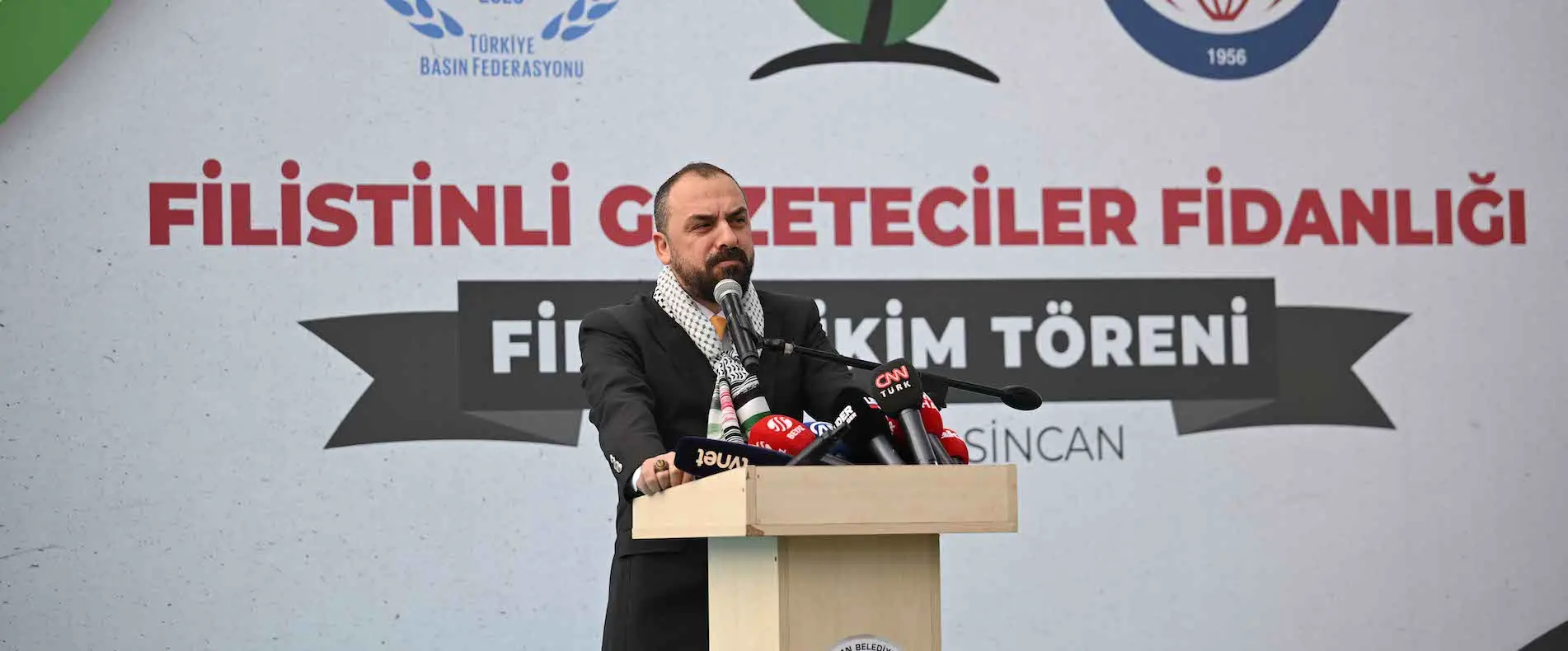 Acar, Sincan Belediyesi ve Türkiye Basın Federasyonu işbirliğinde Sincan'da düzenlenen, Filistinli gazeteciler için fidan dikim töreninde yaptığı konuşmada, bugün burada insanlık vicdanında "umut tohu ...