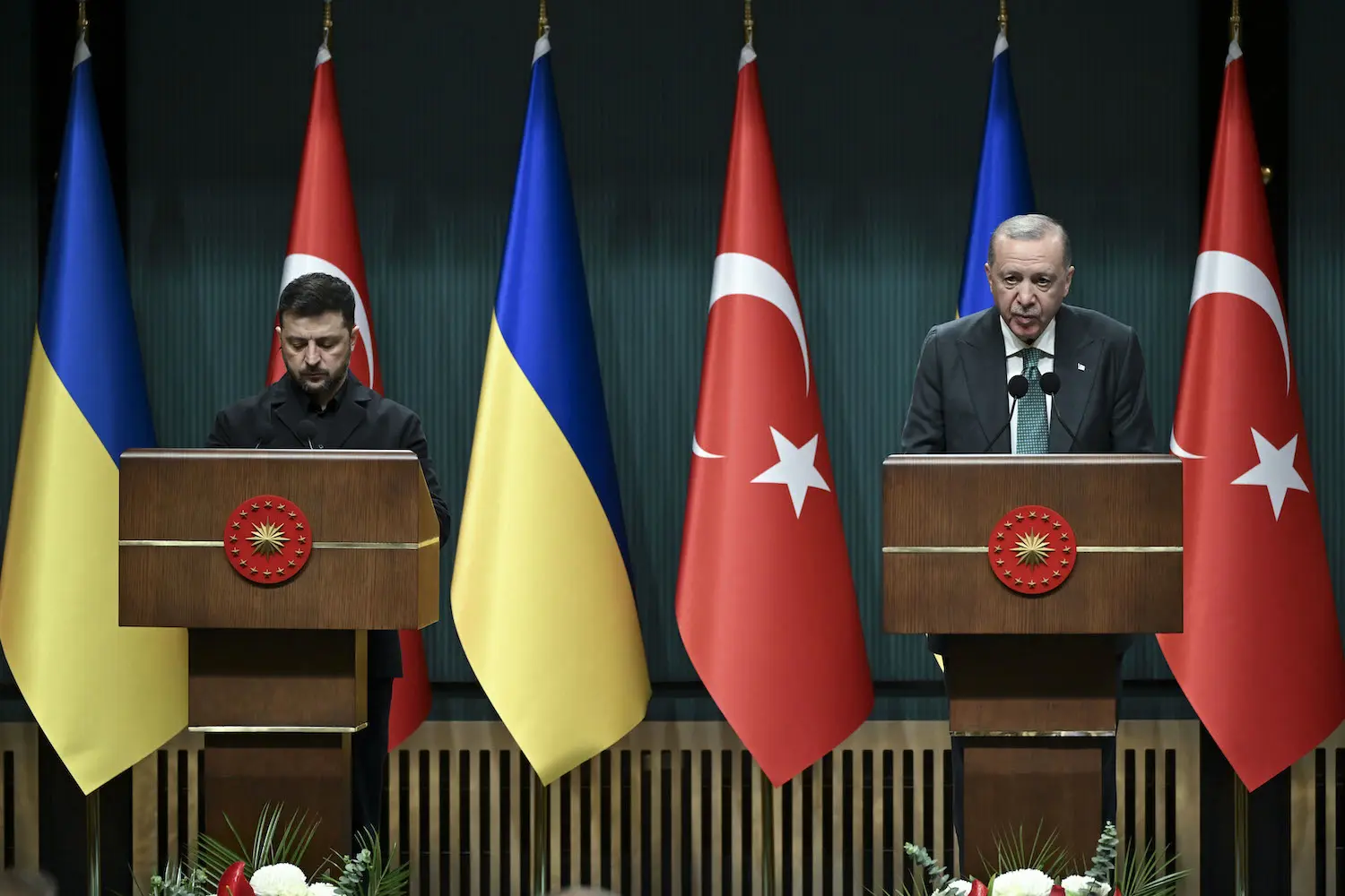 President Recep Tayyip Erdoğan delivered remarks at a joint press conference with President Volodymyr Zelenskyy of Ukraine at the Presidential Complex in Ankara.