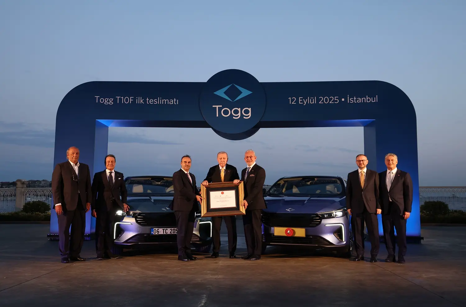 President Recep Tayyip Erdoğan was gifted Togg’s newly-launched model T10F. Togg board members presented the car to President Erdoğan at the premises of Dolmabahçe Presidential Office in Istanbul.