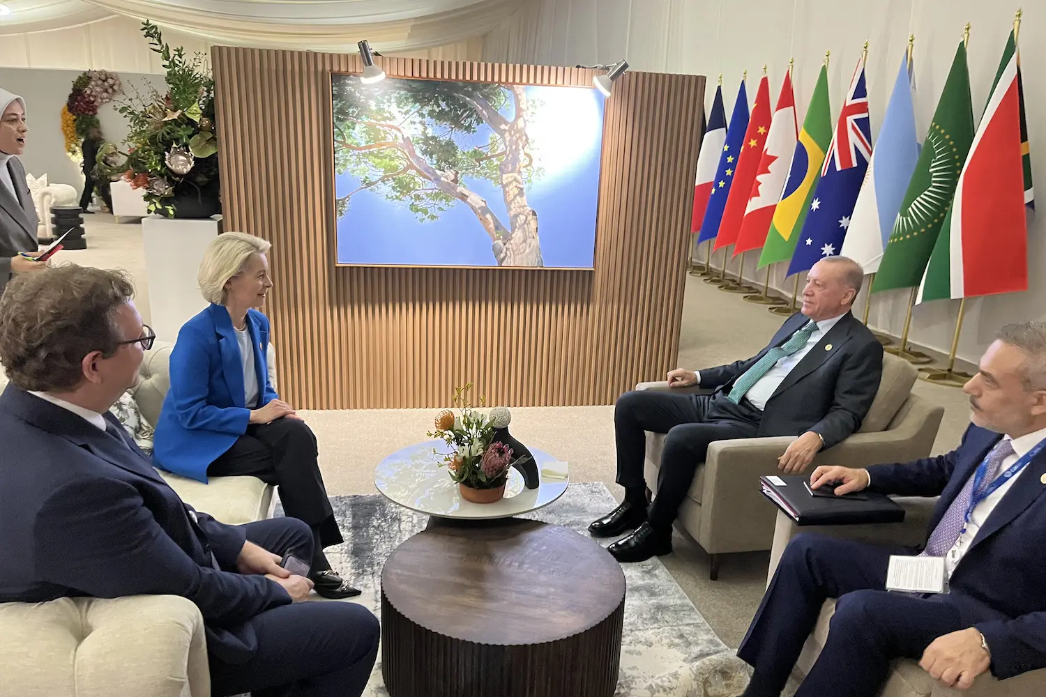 President Recep Tayyip Erdoğan met with President of the European Commission, Ursula von der Leyen, at the Johannesburg Expo Centre, on the margins of the G20 Leaders’ Summit held in Johannesburg, South Africa.