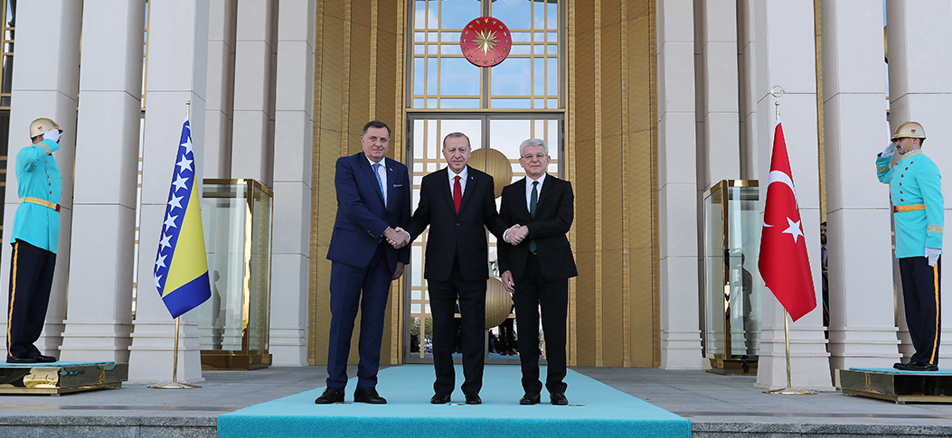 Following the introduction of the delegations, President Erdoğan and Bosnia and Herzegovina Presidential Council Chairman Dodik, along with Council Member Šefik Džaferović, posed for the press and headed inside the Presidential Complex for their talks.