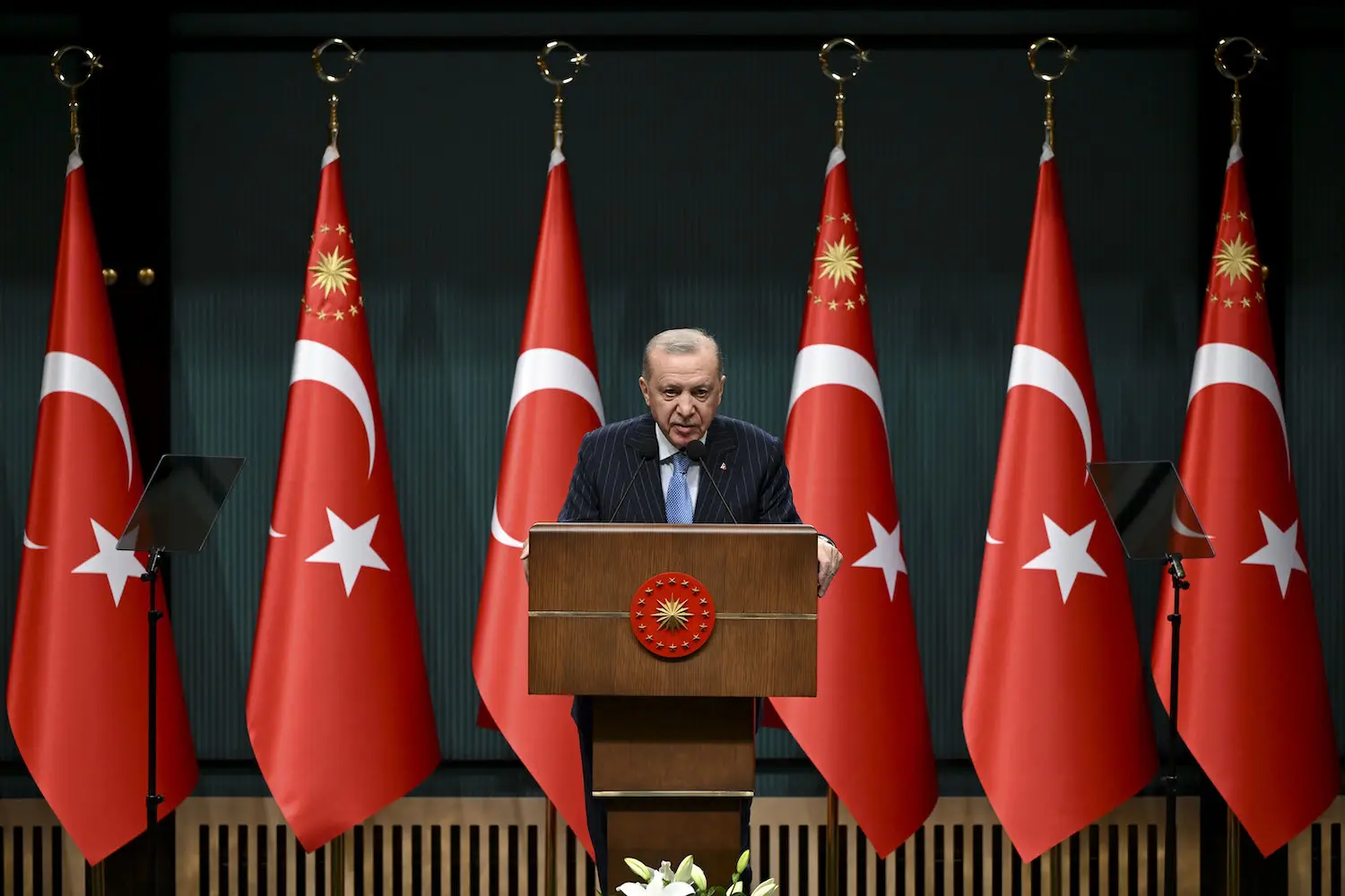 President Recep Tayyip Erdoğan delivered remarks to reporters during a press conference following the Presidential Cabinet Meeting at the Presidential Complex.