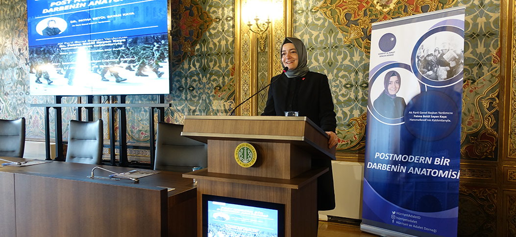 Genel Başkan Yardımcısı Fatma Betül Sayan Kaya, İstanbul Üniversitesinin Doktora Salonunda düzenlenen "Postmodern Bir Darbenin Anatomisi" konferansında konuştu.
