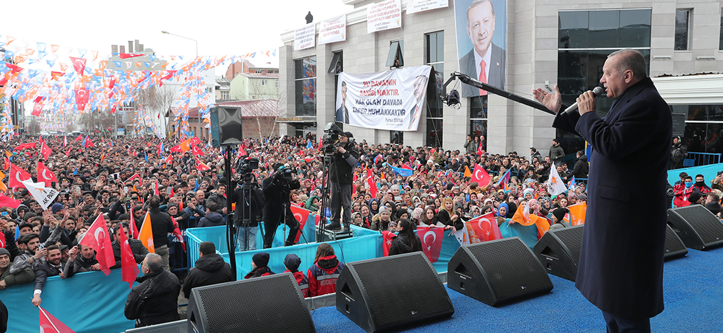 31 Mart’ta sadece belediye başkanları, meclis üyeleri ve muhtarların seçilmeyeceğini, aynı zamanda çok kritik bir tercihte bulunulacağını aktaran Cumhurbaşkanı Erdoğan, "31 Mart’ta ya son 17 yıldır olduğu gibi ’İstikrar sürsün Türkiye büyüsün’ diyeceğiz ya da ülkemizin önünde belirsizliklere kapı aralayacağız." diye konuştu.