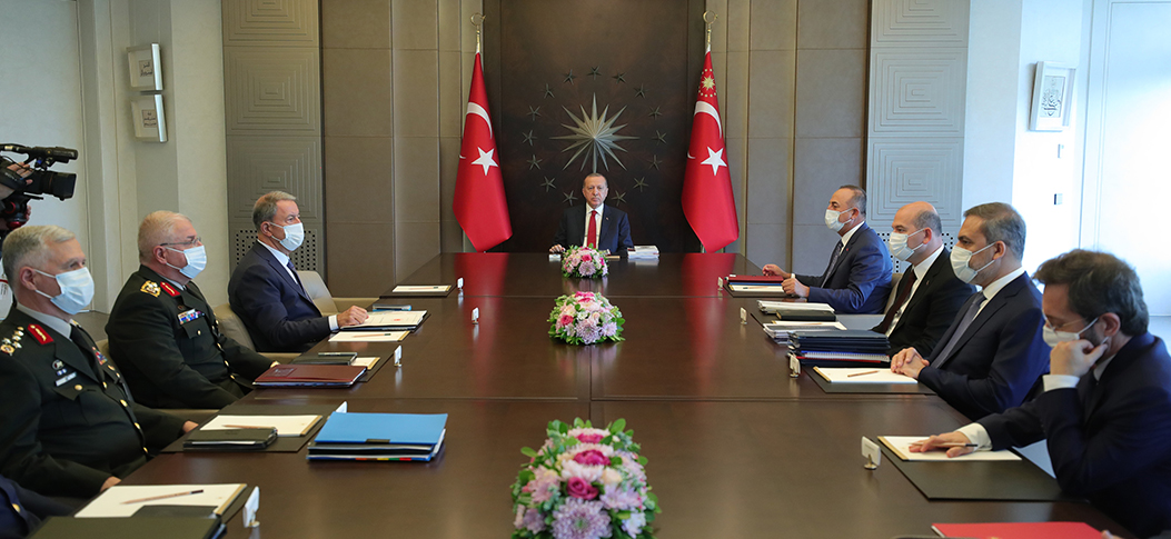 Toplantıya, Cumhurbaşkanı Yardımcısı Fuat Oktay, Dışişleri Bakanı Mevlüt Çavuşoğlu, Milli Savunma Bakanı Hulusi Akar, İçişleri Bakanı Süleyman Soylu, Genelkurmay Başkanı Orgeneral Yaşar Güler, Milli İstihbarat Teşkilatı Başkanı Hakan Fidan, İletişim Başkanı Fahrettin Altun, Kara Kuvvetleri Komutanı Orgeneral Ümit Dündar, Hava Kuvvetleri Komutanı Orgeneral Hasan Küçükakyüz, Deniz Kuvvetleri Komutanı Oramiral Adnan Özbal ve Cumhurbaşkanlığı Sözcüsü İbrahim Kalın katıldı.