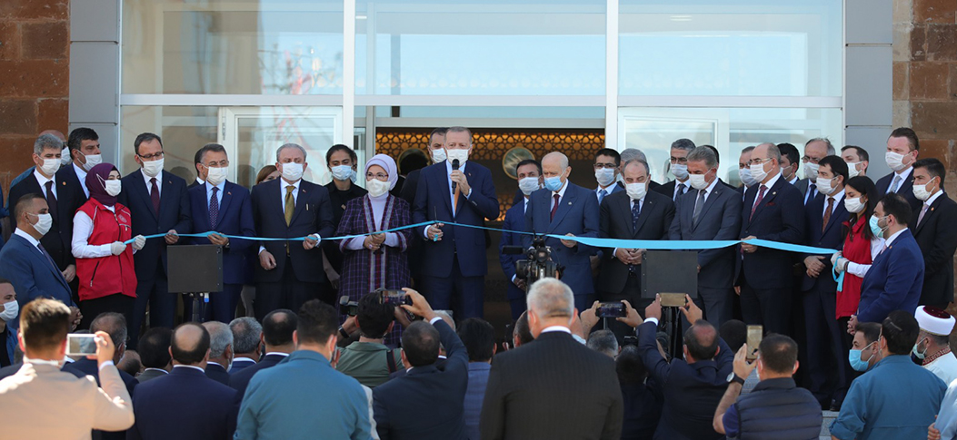 Açılışta, Cumhurbaşkanı Erdoğan’a eşi Emine Erdoğan, TBMM Başkanı Mustafa Şentop, Cumhurbaşkanı Yardımcısı Fuat Oktay, MHP Genel Başkanı Devlet Bahçeli de eşlik etti.