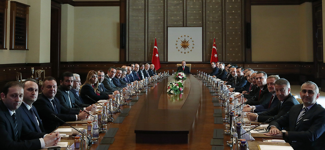 Cumhurbaskanimiz Erdogan, Kulüpler Birligi Baskani Sepil ve beraberindekileri kabul etti