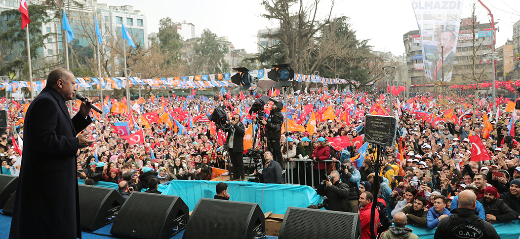 Cumhurbaşkanı Erdoğan, son 17 yılda önlerine çıkarılan her engeli, her türlü badireyi halkın desteği ile aştıklarını vurgulayarak, "Omuz omuza, gönül gönüle verdik, Türkiye’yi hep birlikte tarihinin en büyük başarılarıyla, en büyük yatırımları ile tanıştırdık. Fakat şimdi gene önümüzde kritik bir sınav var. 31 Mart hepimiz için önemli imkan. Adeta bir beka meselesi." diye konuştu.