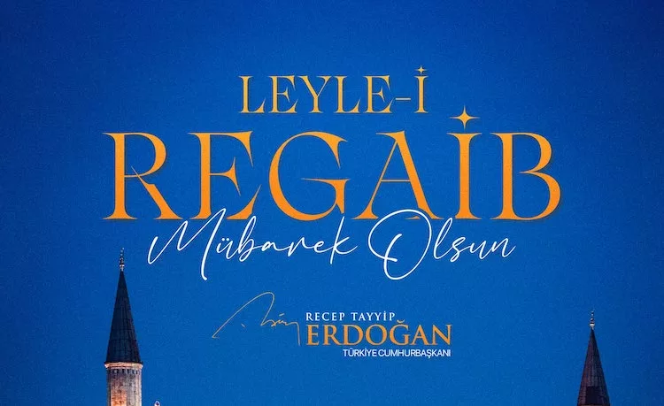 Cumhurbaşkanımız Erdoğan, NSosyal hesabından yaptığı paylaşımda, "Milletimizin ve İslam aleminin mübarek üç aylarını ve Leyle-i Regaib'ini tebrik ediyorum. Rahmet ve mağfiret ikliminin kalplerimizi kuşattığı bu önemli gecenin, 86 milyon vatandaşımızla birlikte gönül coğrafyamız ve tüm İslam alemi için hayırlar getirmesini temenni ediyorum." ifadesini kullandı.