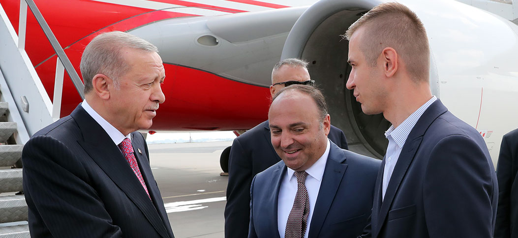 Erdoğan'a, Dışişleri Bakanı Mevlüt Çavuşoğlu, Enerji ve Tabii Kaynaklar Bakanı Fatih Dönmez, Milli Savunma Bakanı Hulusi Akar, Tarım ve Orman Bakanı Vahit Kirişci, Ticaret Bakanı Mehmet Muş, Milli İstihbarat Teşkilatı Başkanı Hakan Fidan, Cumhurbaşkanlığı İletişim Başkanı Fahrettin Altun, Cumhurbaşkanlığı Sözcüsü İbrahim Kalın, Cumhurbaşkanlığı Savunma Sanayii Başkanı İsmail Demir, AK Parti Genel Başkan Yardımcısı ve Parti Sözcüsü Ömer Çelik ile Baykar Genel Müdürü Haluk Bayraktar da eşlik ediyor.