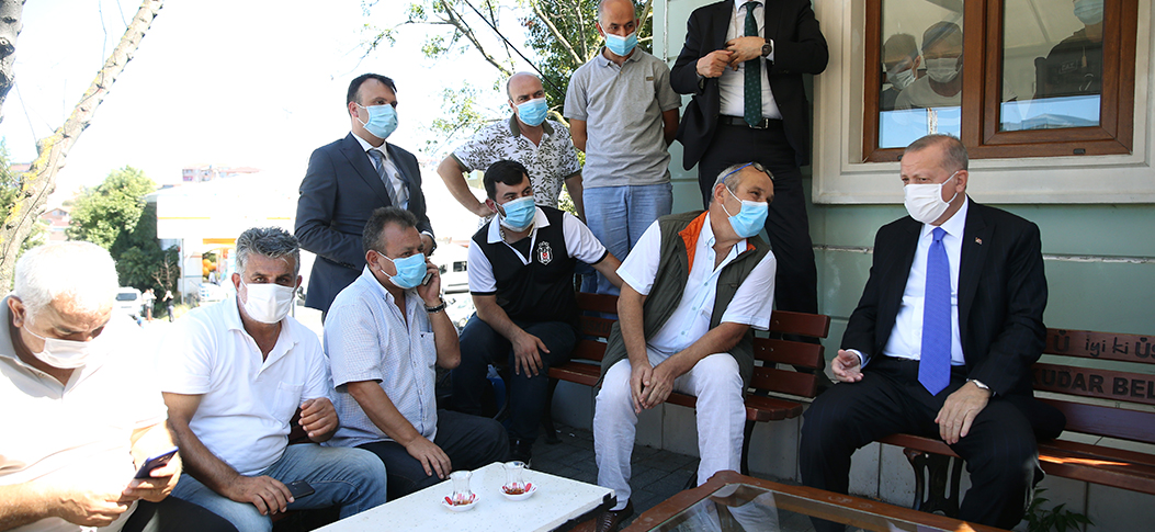 Burada vatandaşlarla bir süre sohbet ederek çay içen Erdoğan, vatandaşlarla fotoğraf da çektirdi.