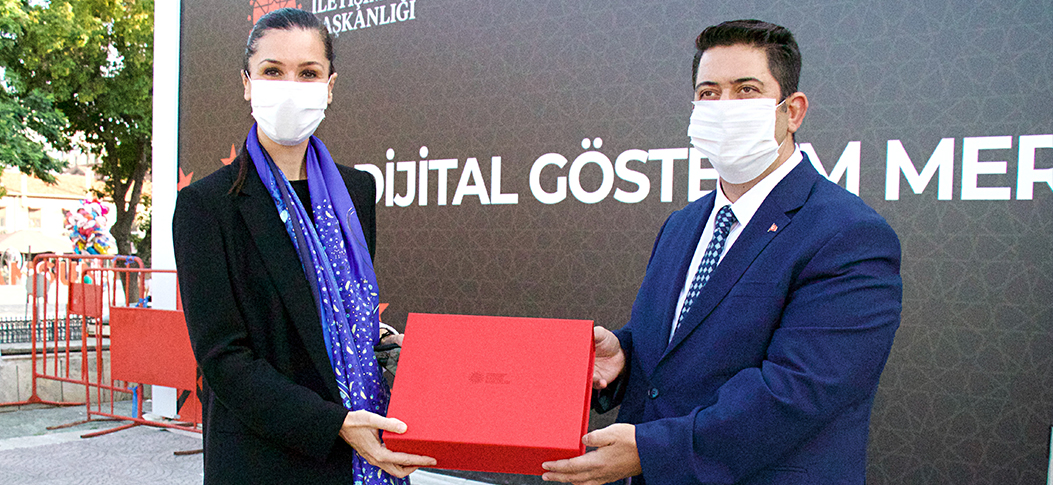 Karaaslan, Cumhuriyet Meydanı’nda yaklaşık 1000 metrekare alana kurulan Dijital Gösterim Merkezi’ni gezerek, 30 Ağustos Zafer Bayramı ve Ayasofya-i Kebir Cami-i Şerifi temalı gösterimi izledi.