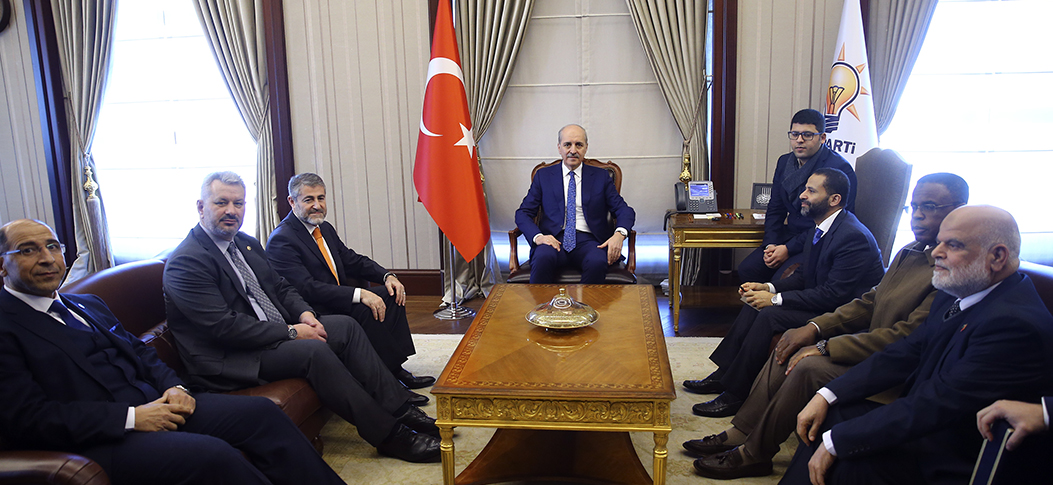 Genel Başkanvekili Numan Kurtulmuş (ortada), "Parlamenterler Arası Kudüs Platformu" heyeti ile Genel Merkez’deki makamında bir araya geldi.