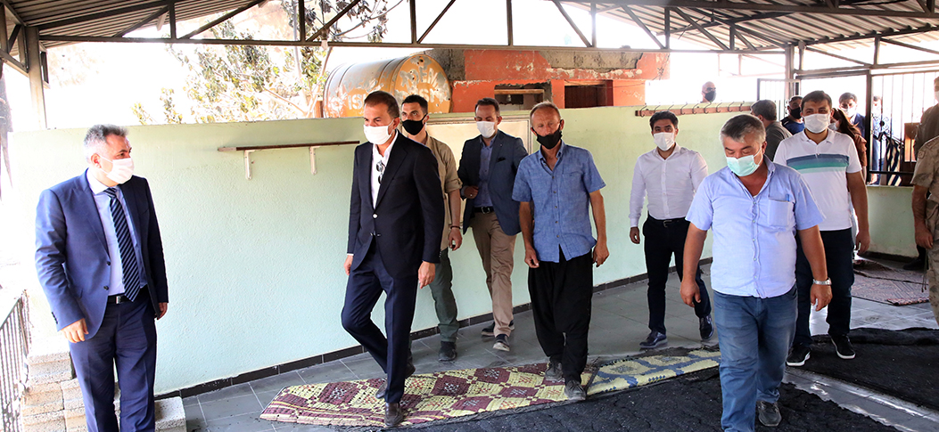 Çelik, beraberinde Vali Süleyman Elban ile önceki gün başlayan ve bu sabah saatlerinde kontrol altına alınan yangından etkilenen köylerde incelemede bulundu.