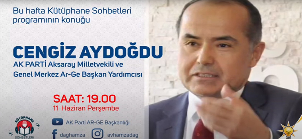 AK Parti Kütüphane Sohbetleri’nin bu haftaki konuğu AR-GE Başkan Yardımcısı ve Aksaray Milletvekilimiz Sayın Cengiz Aydoğdu olacak. 11 Haziran 2020 Perşembe günü saat 19.00’da canlı yayınlanacak olan programı izlemek için aşağıdaki linki takip edebilirsiniz.